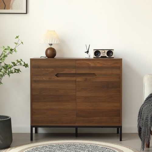 - 【幅90cm】キャビネット 木製 脚付き 収納棚 チェスト サイドボード リビングボード 引き出し付き 両開き 扉付きシェルフ 大容量収納