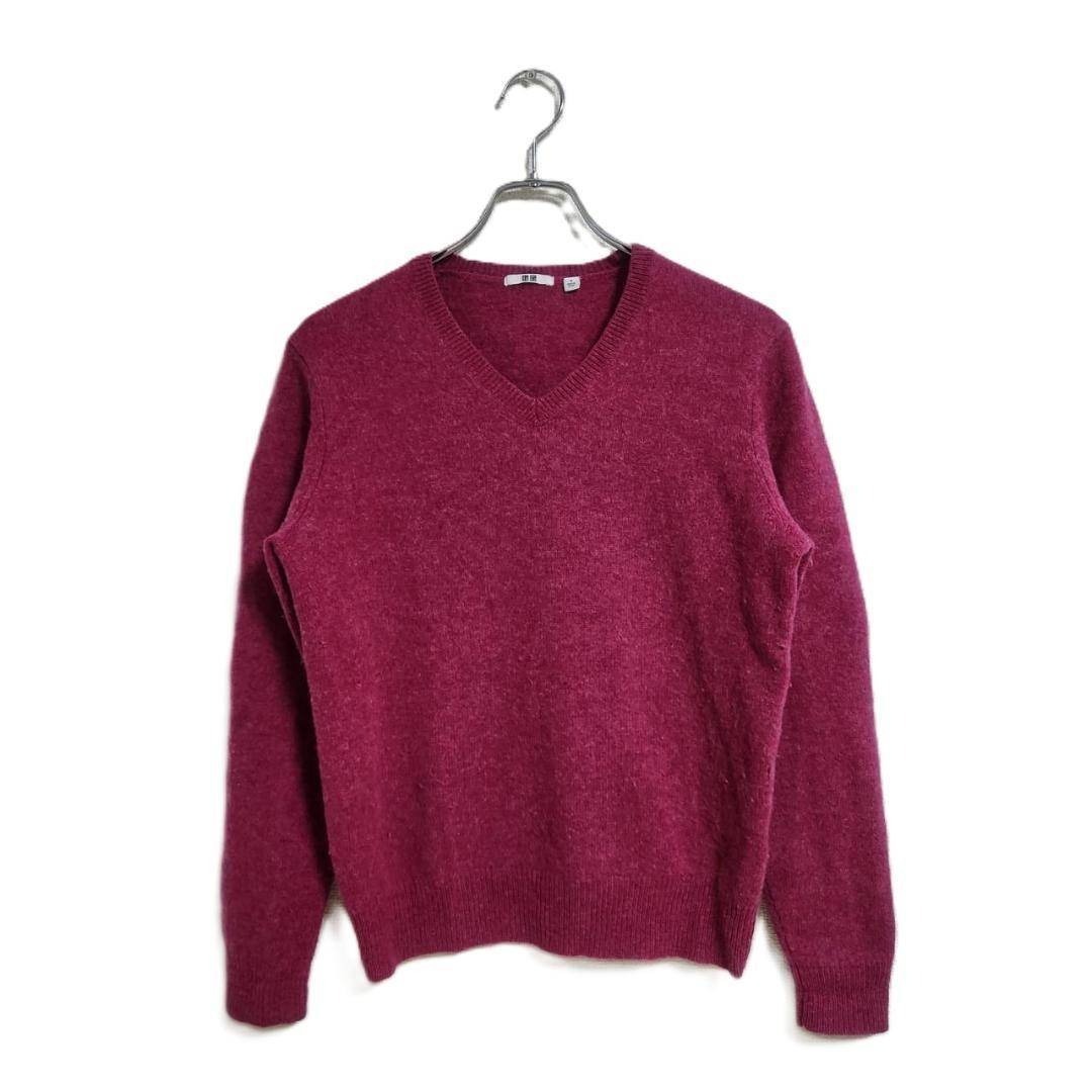 - ユニクロ ニット M ワインレッド Vネック ウール 秋冬 シンプル 上品