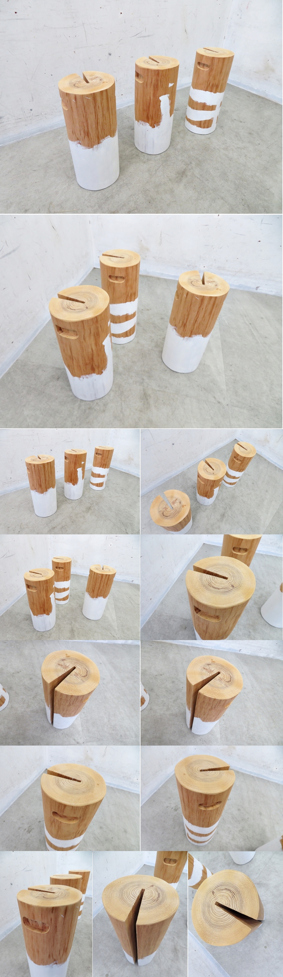 > ■P036■展示品■和モダン■丸太/切り株■無垢材■ソリッド■年輪■スツール/ローチェア■3脚セット■カントリー■サイドテーブル