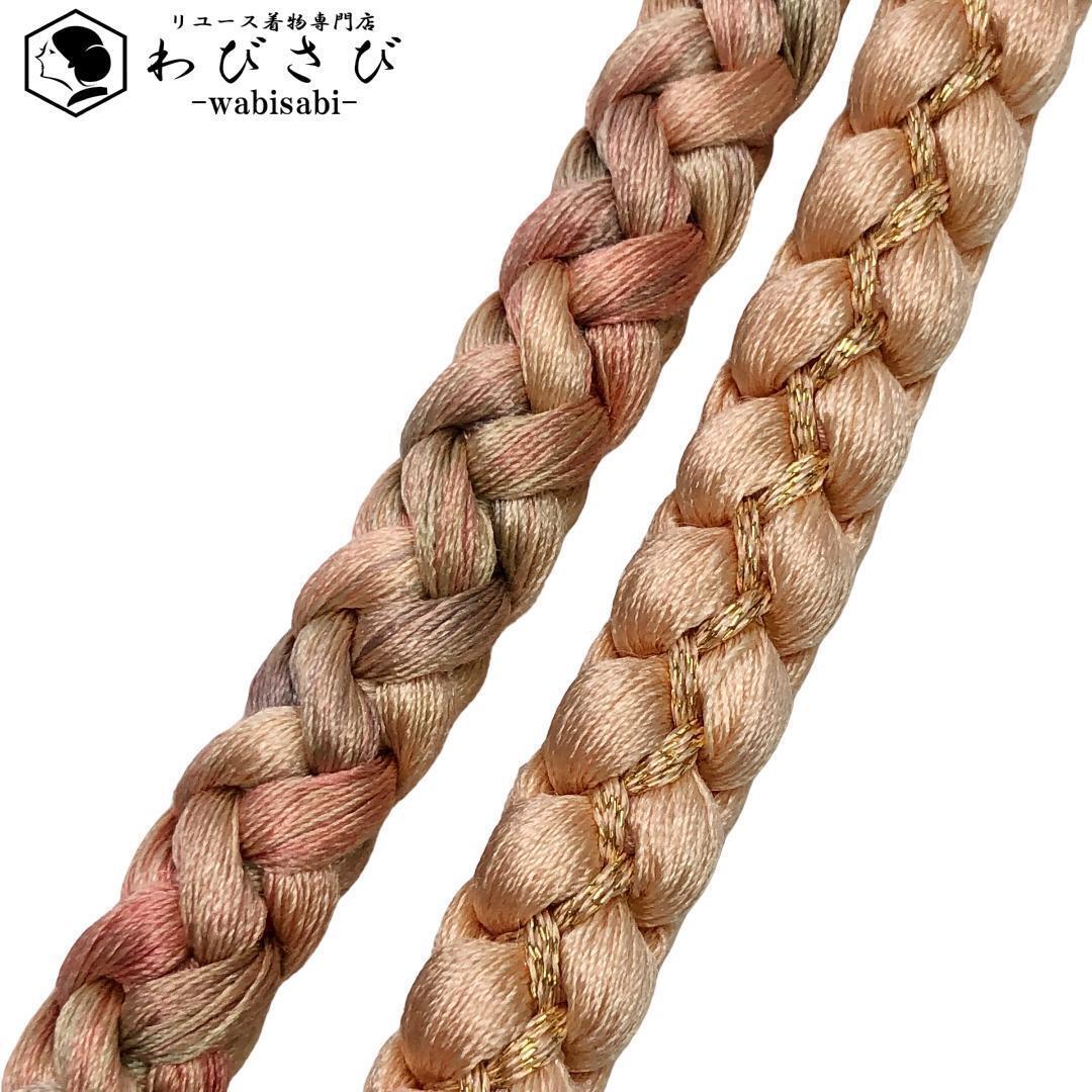 > 和装小物 帯締め 正絹 丸組紐 組紐 薄柿色 金糸 C-6560 着物 きもの kimono 和服 和装 中古 リサイクル着物 【送料無料】