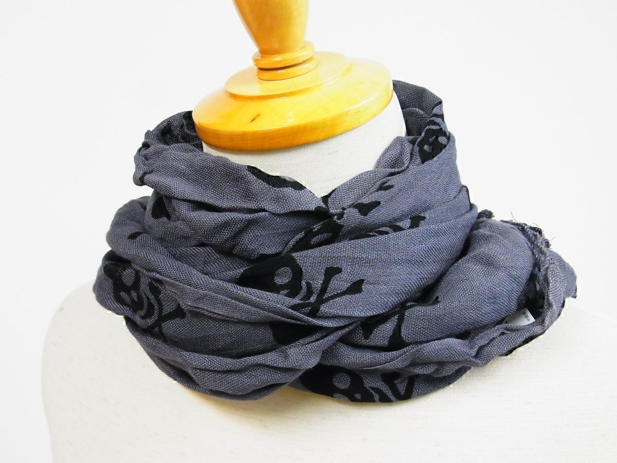 - ★中古品★NoBrand ノーブランド★スカルドットロングストール★チャコール濃灰★ロングストール★男女兼用★抜け感