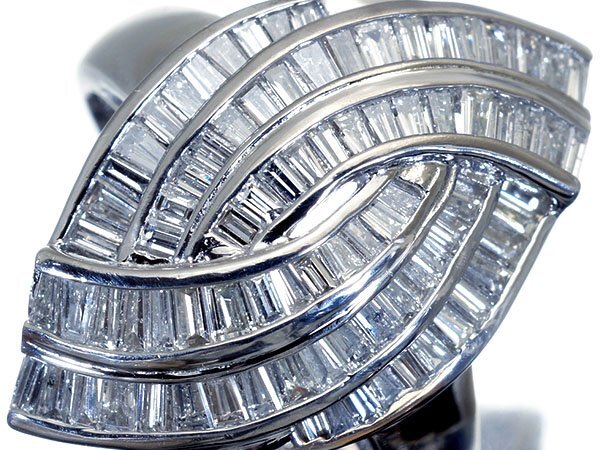 - 【ジュエリー極】眩い輝き!極上天然バケットカットダイヤモンド1.52ct 超高級Pt900リング h7886rr【送料無料】