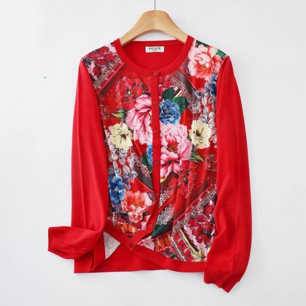 > wnm 綿50%テンセル50% カーディガン 羽織物 アウター チュニック トップス ニット セーター フリーサイズ ゆったり 前身頃花柄生地14