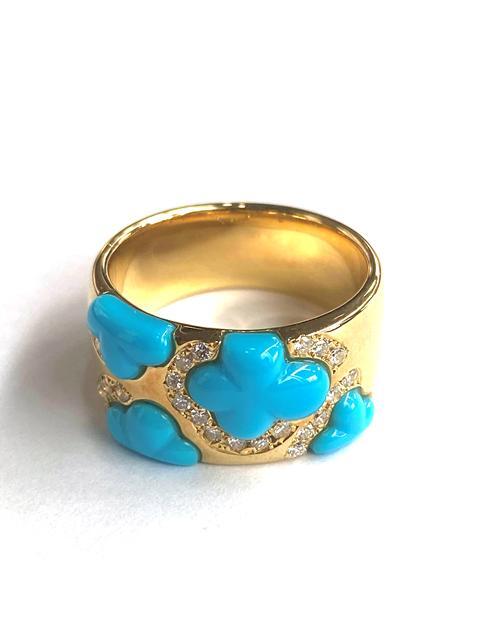 > 【即決/12号】 K18 ターコイズ D0.18 ダイヤモンド フラワー リング 宝石 ジュエリー YG ゴールド 金 指輪 トルコ石 花 10.9g
