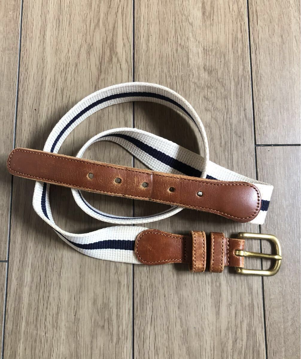 > COACH NATURAL LINEN レザー ベルト 3835 34in 85cm ネイビーライン コーチ Vintage OLD