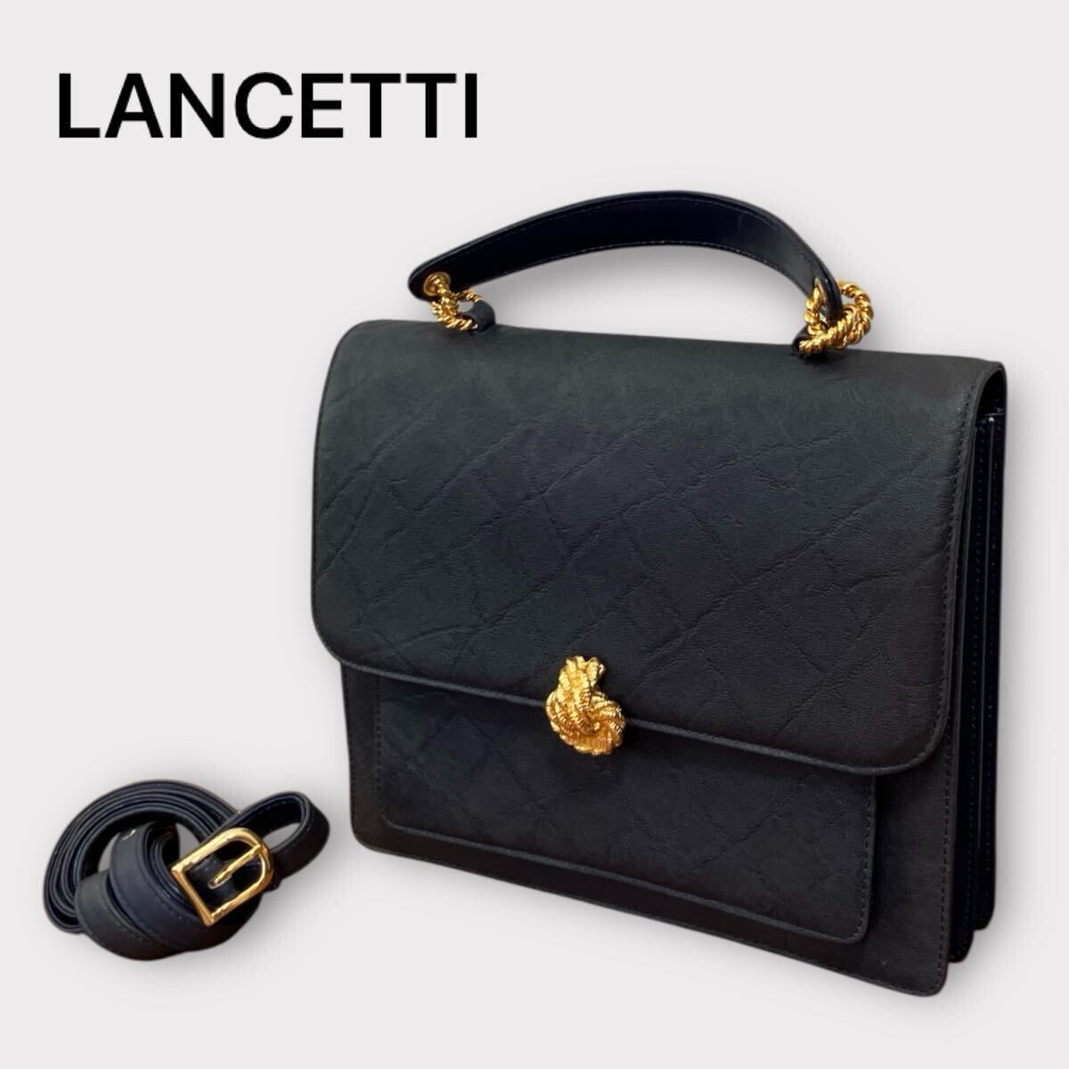 - LANCETTI ランチェッティ 2WAY ショルダーバッグ ハンドバッグ エレファントレザー 象革 ゴールド金具 極美品 ネイビー