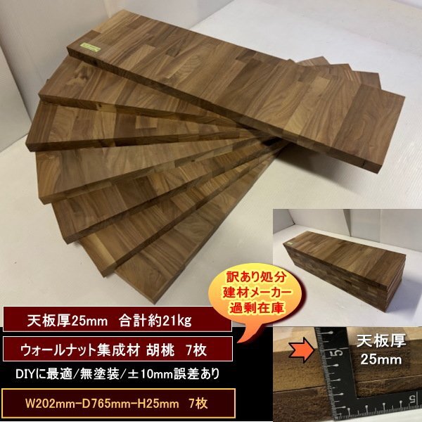 > ウォールナット集成材 胡桃 くるみ 高級材 端材 7点 約21kg 無塗装 天板厚25mm 202-765-25mm 7枚 送料無料 訳あり処分
