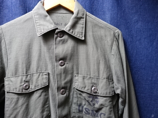 > SALE ビンテージ 70'S コットン サテン OG-107 USMC ステンシル ユーティリティ シャツ ヴィンテージ US ARMY ミリタリー 古着 アメカジ 57