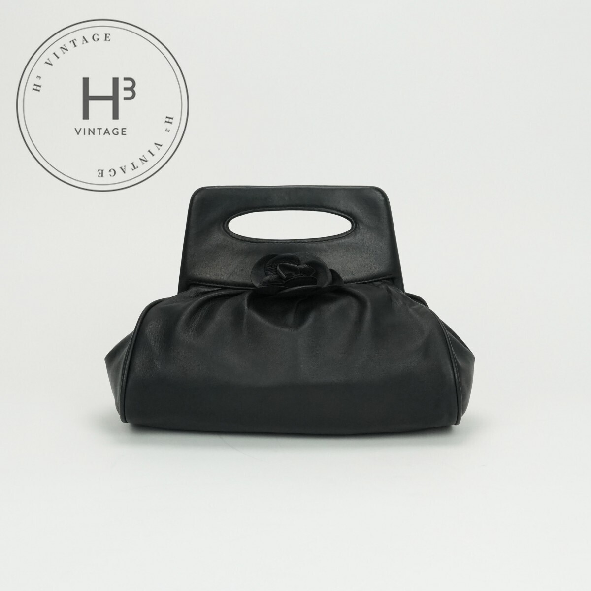 > シャネル CHANEL カメリア バッグ トートバッグ ラムスキン ブラック Black 黒 シルバー金具 ハンドバッグ
