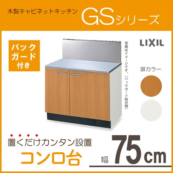 > コンロ台(バックガード付) 75cm GSシリーズ GSM-K-75K,GSE-K-75K,BGH-750 リクシル LIXIL サンウェーブ