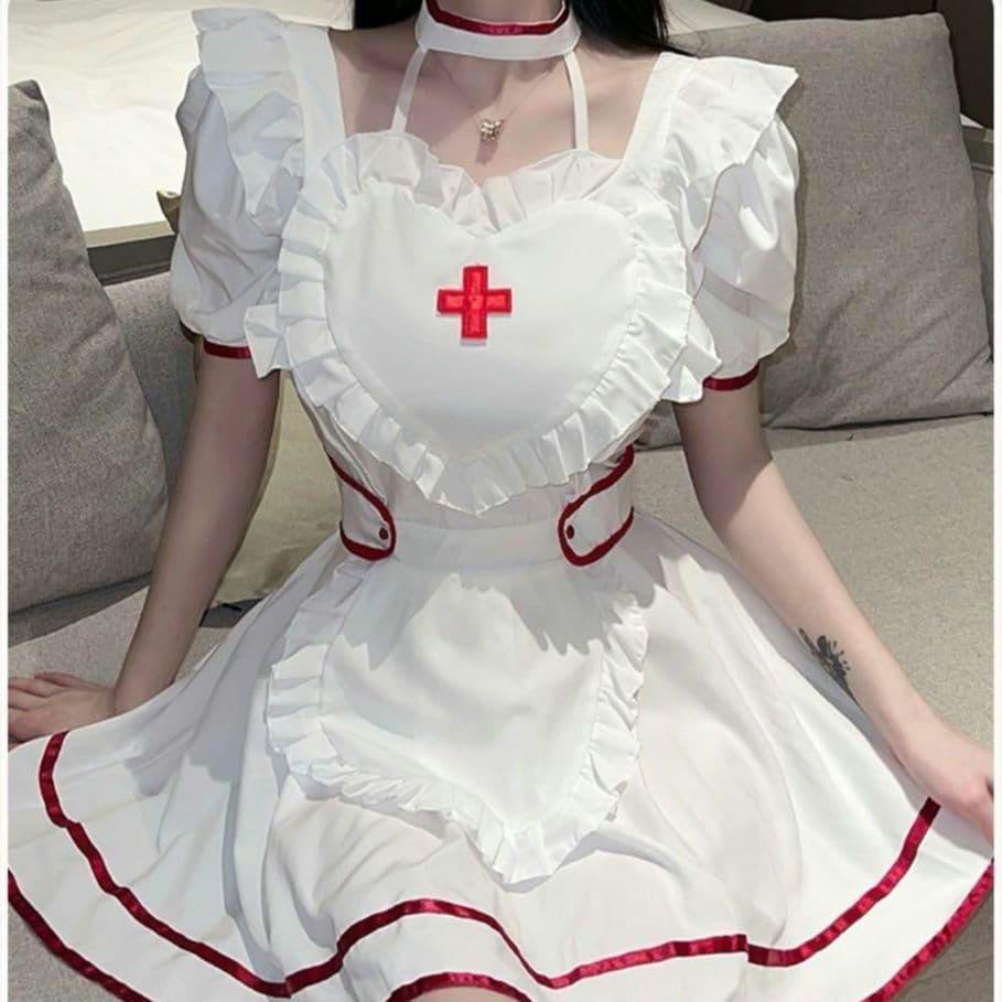 - 【新品未使用】ナース コスプレ セクシー エロ可愛い メイド ハロウィン レディース М ホワイト