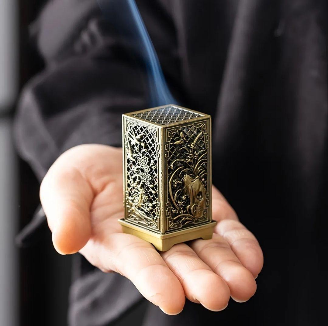 - 香炉 お香立て 線香 銅色 巻香 コーン型 インセンス アロマ 中国式 ミニ 小型 線香立て アンティーク 真鍮 蓋付き お香 スタンド レトロ 金