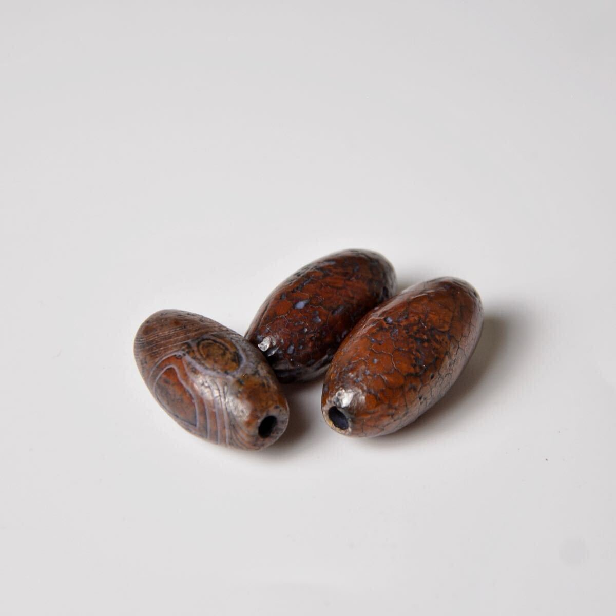 - 小舫 時代物 瑪瑙珠 3点セット 検:瑪瑙 天珠 線天珠 眼天珠 チベット 西蔵 古美術 時代物 骨董b0430