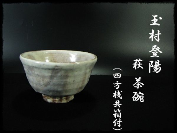 - ∴名工館∴【送込!玉村 登陽】萩 茶碗 茶道具 四方桟 共箱 上位品 無傷 真作保障 送料無料 8 d212