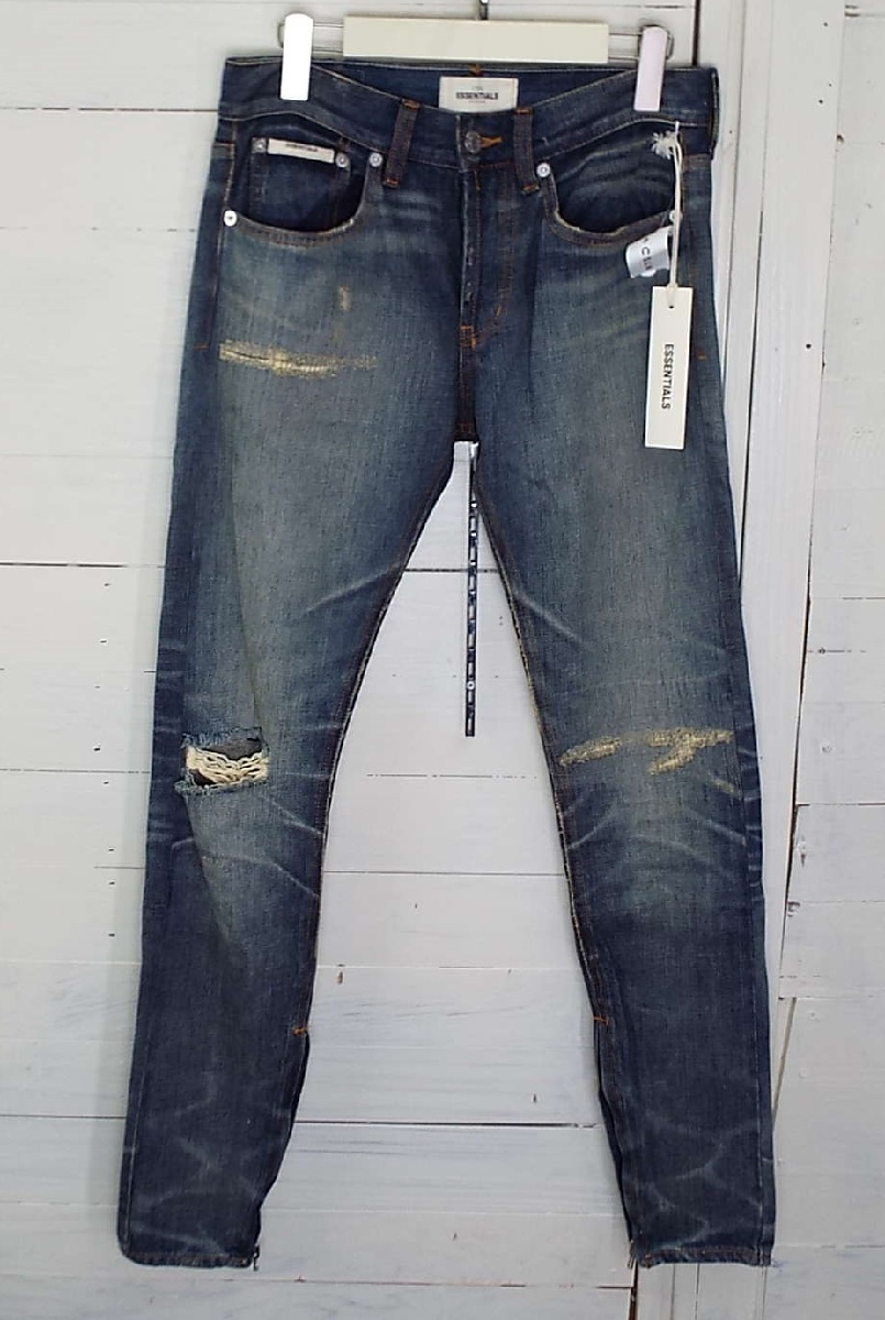 - T2720〇FOG ESSENTIALS(エフオージー エッセンシャルズ)ダメージ ジーンズ スキニー パンツ 裾ジップ デニム コットン W28