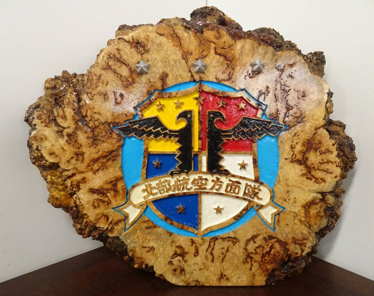 - 航空自衛隊 北部航空方面隊 エンブレム 木彫 無垢一枚板 レリーフ 看板 壁飾り 横51×縦41×厚さ5.8cm 重さ4.5kg