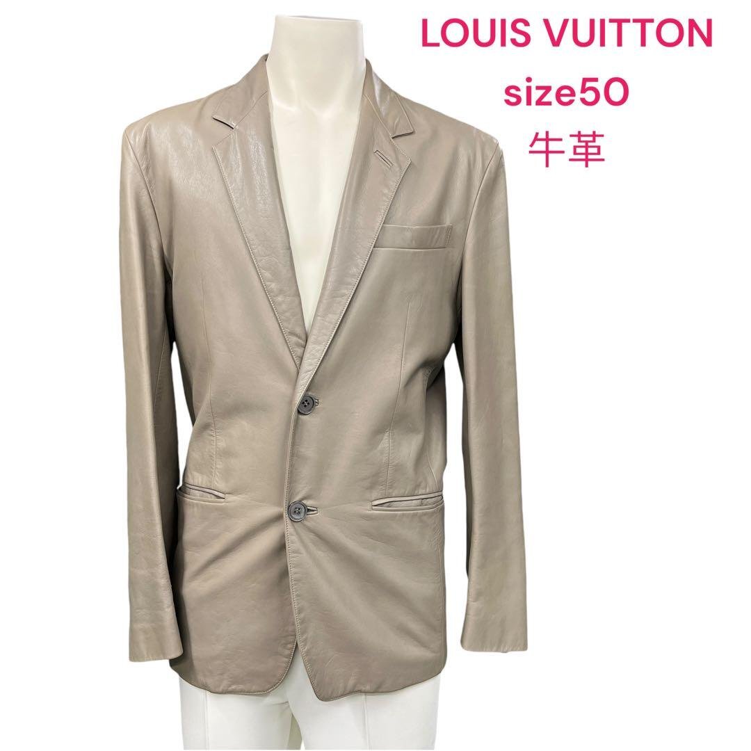 - LOUIS VUITTON ルイヴィトン レザージャケット 革ジャン 牛革 リアルレザー グレージュ 50 XL LL メンズ M4I325