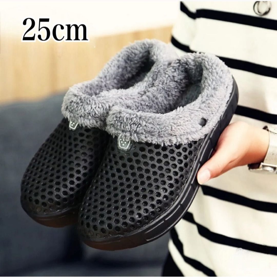 - 25cm サンダル ボア 冬 外用 あったか もこもこ サンダル ブラック