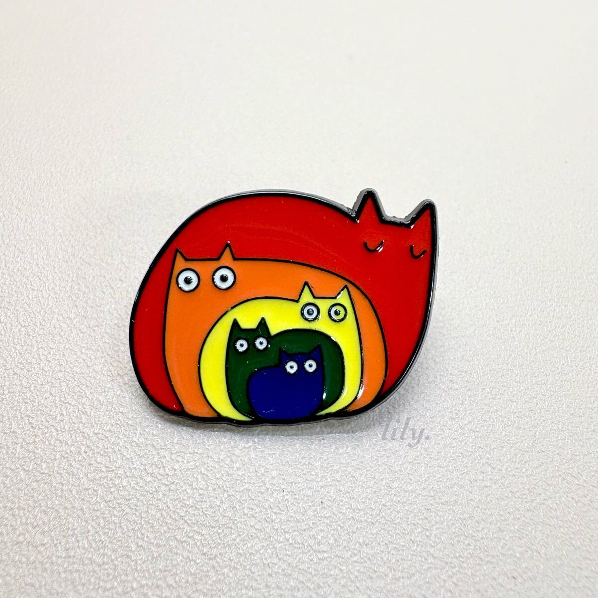 - 【ピンバッジ】入れ子になったカラフルな猫ちゃん達