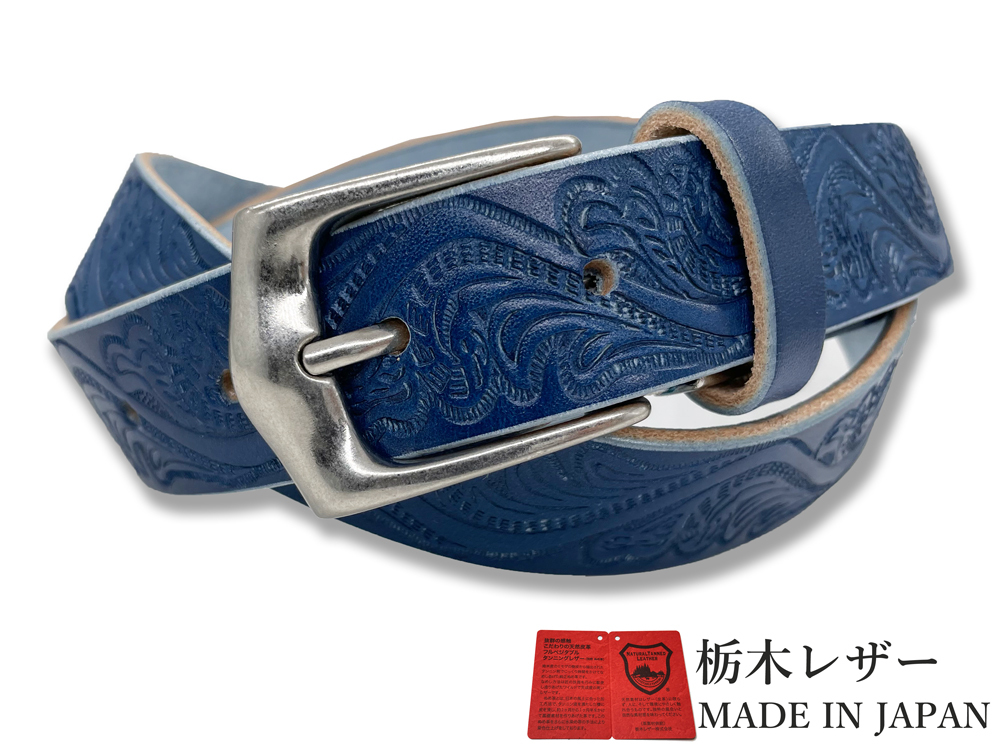 - 訳あり 新品 アウトレット 栃木レザーベルト 牛革 本革 Mサイズ クラフト メンズ カジュアル 国産 30mm ネイビー ヌメ 紺色 w058b-M-NAVY