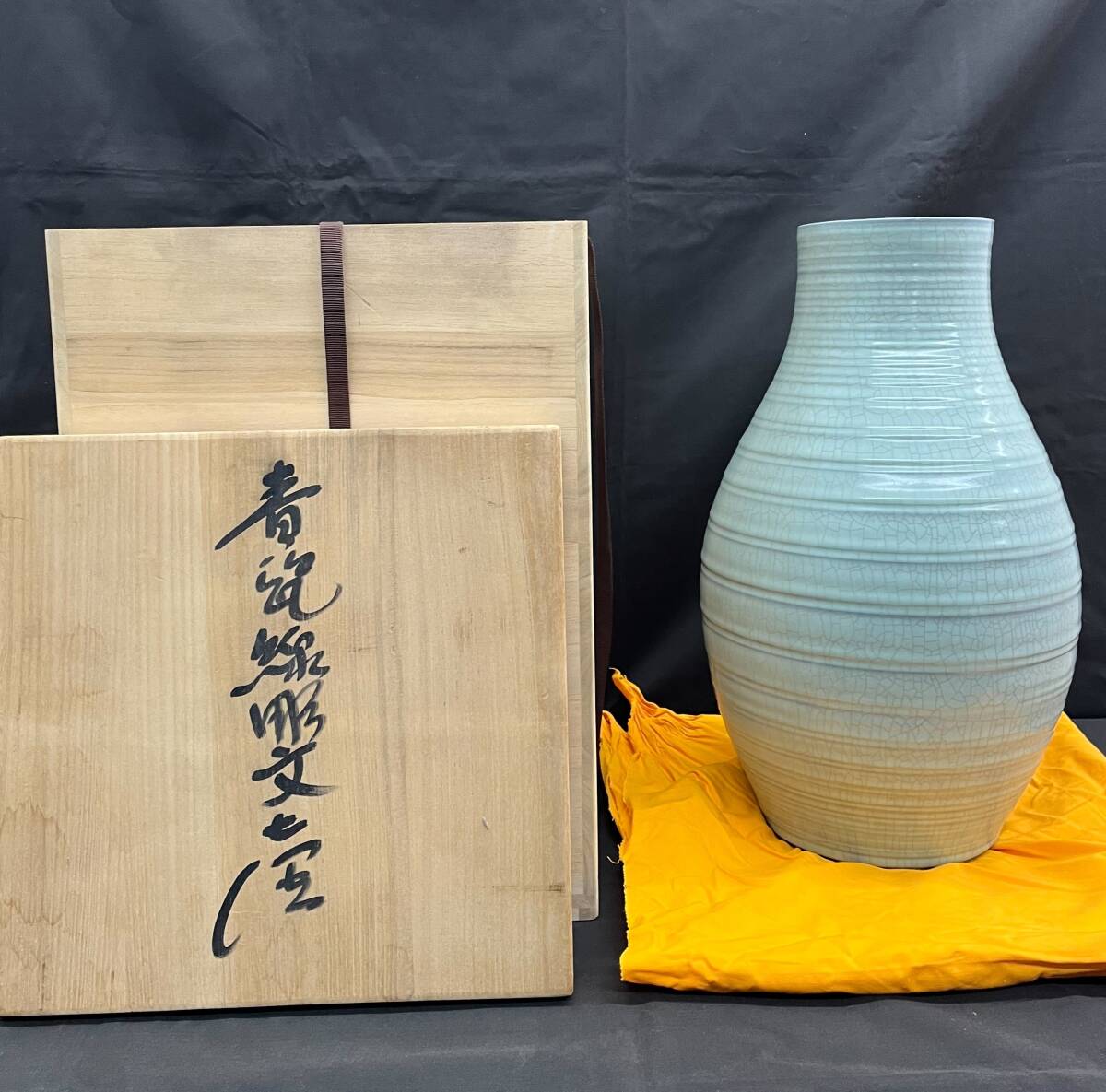∫中島 宏 大型作 骨董 古美術|最上位 青磁線彫文壺| 大壺 人間国宝|青磁 壷 壺 飾壺 美術 青瓷彫文壷 資産家買取品 高級■O7039の出品です!