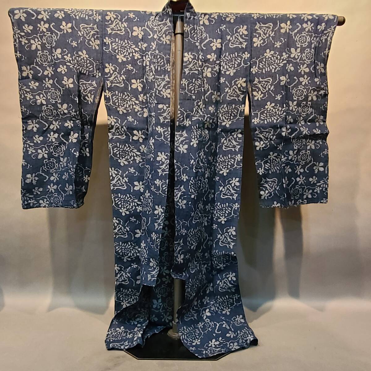 - ◆近江上布 麻 壺 華文様 子供着物◆ 時代衣装古裂古布型染絵絣筒描幟旗風呂敷夜着布団襤褸ボロ庄内刺子蚊絣書生絣久留米絣法衣