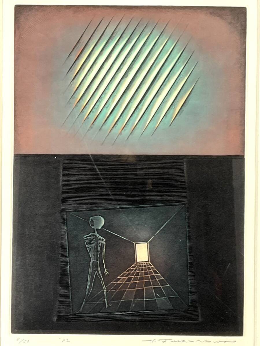 真作■銅版画■深沢幸雄■『青い通路』■1982年■有名作家■希少限定■額付絵画■ 9c拍卖