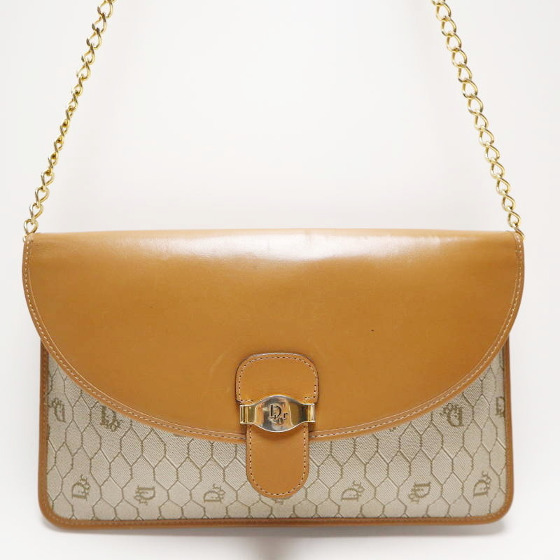 - M06-k082 Christian Dior クリスチャンディオール ハニカム柄 PVC/レザー チェーンショルダーバッグ ベージュ