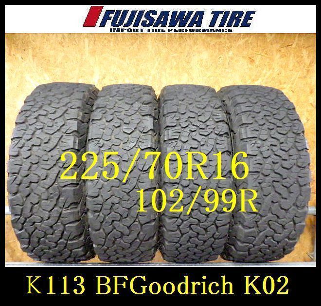 > 【K113】H◆送料無料◆2022年製造 約7.5部山◆BFGoodrich T/A KO2 ホワイトレター◆225/70R16◆4本
