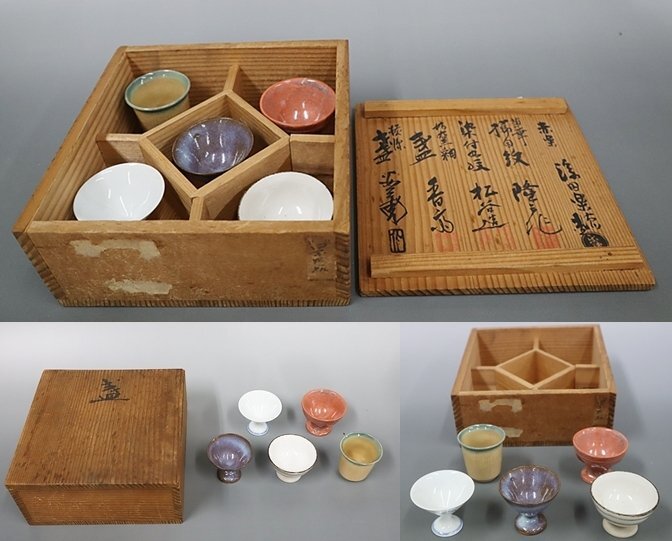 商品名 《宇喜多秀家子孫末裔 浮田楽徳 赤楽 他五家競作盃 自題共箱入》