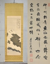 > 64◆初荷です ◆掛軸 呉竹仙史(安田篤) 画賛 彩色富嶽図 真作 絹本 ◆名品 大幅 明治~昭和にかけて活躍した画家