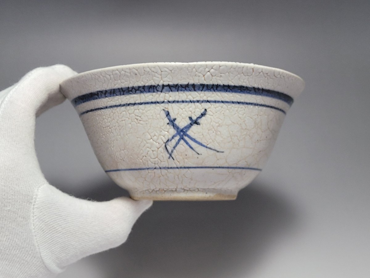 > 染付 草紋 茶碗 幅約15.7cm / 茶碗 茶道具 煎茶道具 茶器 人間国宝 李朝 高麗 唐物 古玩 古董