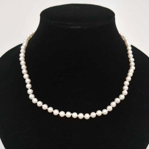 - 真珠 ネックレス パール ホワイト系 5.2mm前後 16.62g 約42cm前後 SILVER 925刻印 Pearl 中古 ◆2008