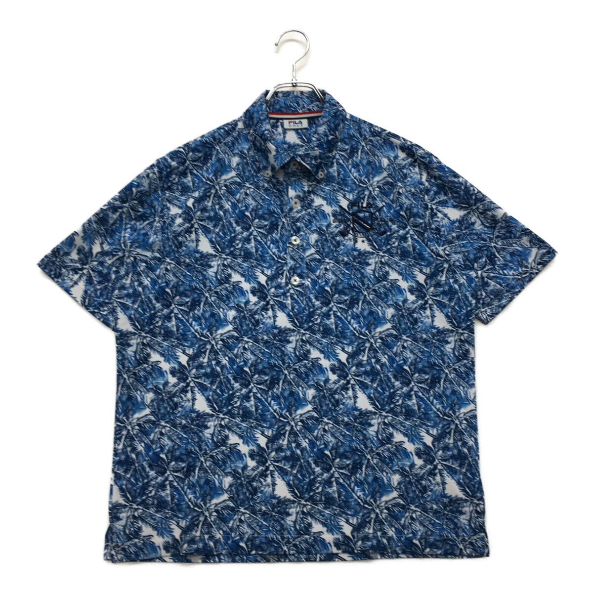 - coco 中古 フィラゴルフ FILA GOLF メンズ 半袖ポロシャツ L 青×白 ボタンダウン ヤシの木柄 レターパックプラス発送可 91534