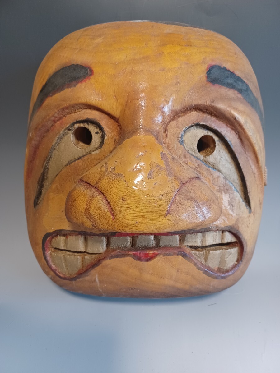 - No.24 コレクター放出品 松尾明神 お面 魔除け 木彫り 木彫り面 能面 神楽 細密彫刻 木工芸 箱なし 和風インテリア