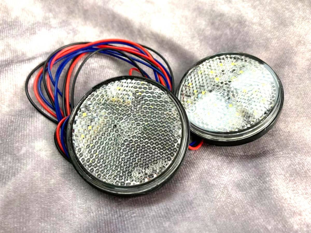 - LEDリフレクター 12V 汎用 反射板 丸形 ダブル発光 白レンズ 赤 2個セット 新品 けん引 牽引 船 ボート