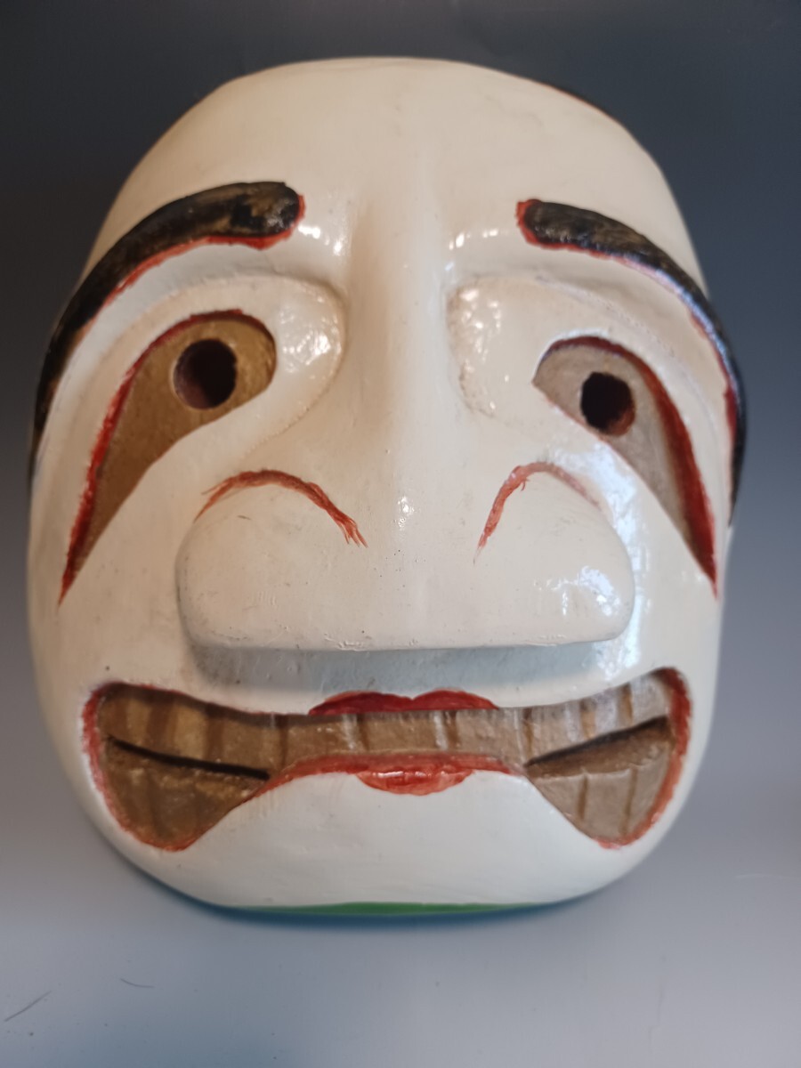 - No.23 コレクター放出品 松尾明神 お面 魔除け 木彫り 木彫り面 能面 神楽 細密彫刻 木工芸 箱なし 和風インテリア