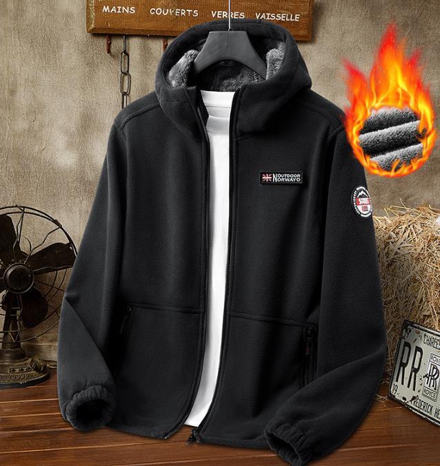 - ブルゾン アウター 防風 ブルゾン ボアフリースジャケット モコモコ 裏ボア裏起毛 ジャンパー フード付き【2688】黒 L