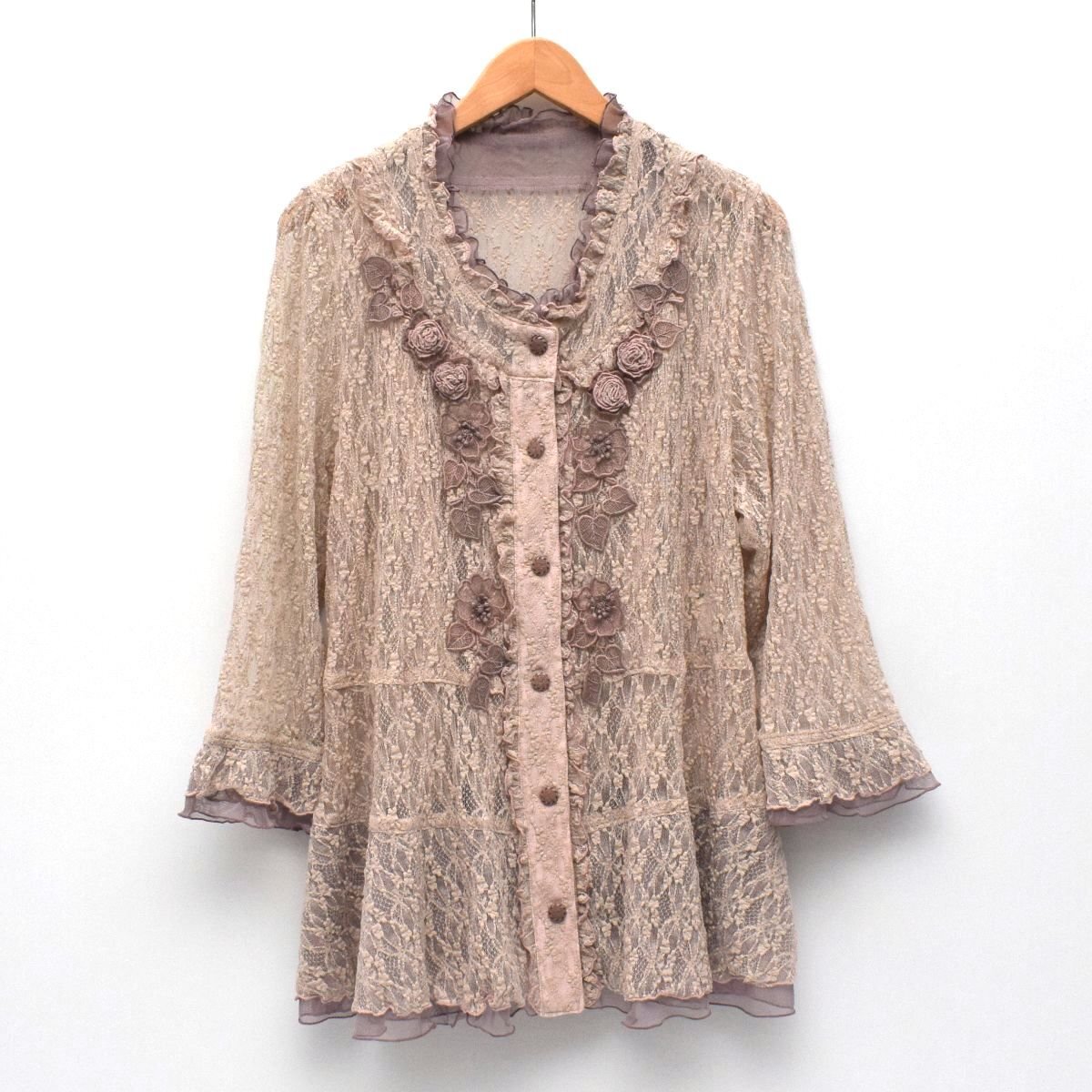 - Dea Solare デーアソラーレ レース 花モチーフ 刺繍 ブラウス ジャケット アトリエまりこお好きな方 [S107962]