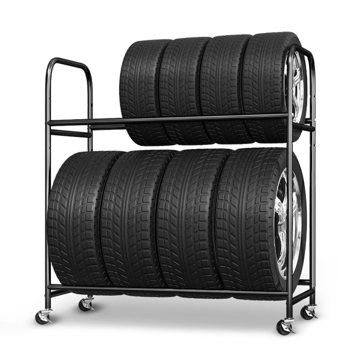 - 送料無料 タイヤ ラック スタンド 縦 置き 横 幅109cm 収納 8本 3段調整可能 キャスター付き タイヤスタンド タイヤ収納ラック ワイドTR001