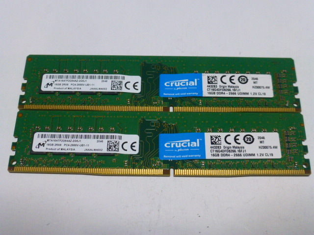 > メモリ デスクトップパソコン用 Micron DDR4-2666 PC4-21300 16GBx2枚 合計32GB 起動確認済みです