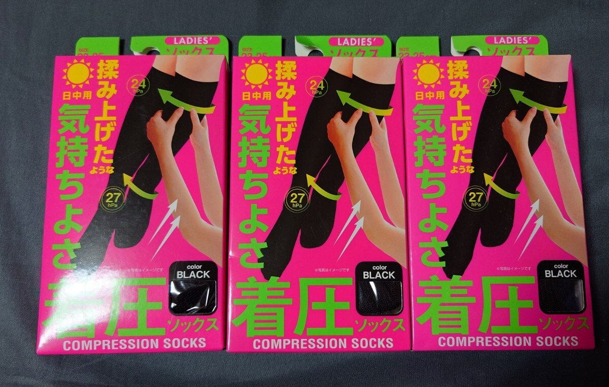 - 着圧ソックス3足組 ハイソックス 黒くつ下 ブラック