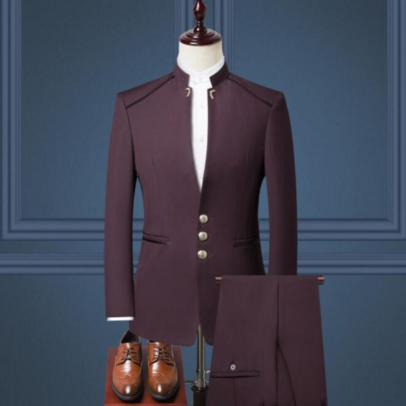 - メンズ ビジネススーツ スーツセットアップ 3点セット スーツ フォーマルスーツ テーラードジャケット ベスト パンツ ワイン M~4XL