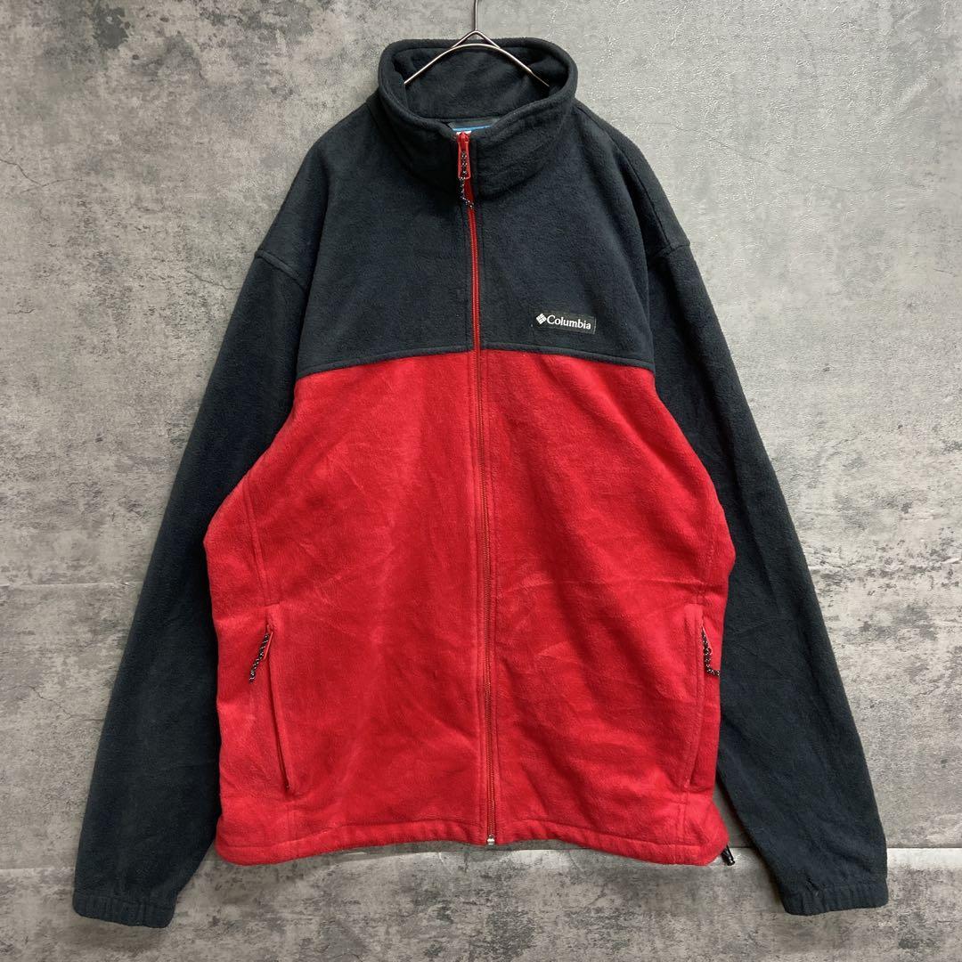 - コロンビア 刺繍ロゴ フリースジャケット 赤×黒 バイカラー L【6019】