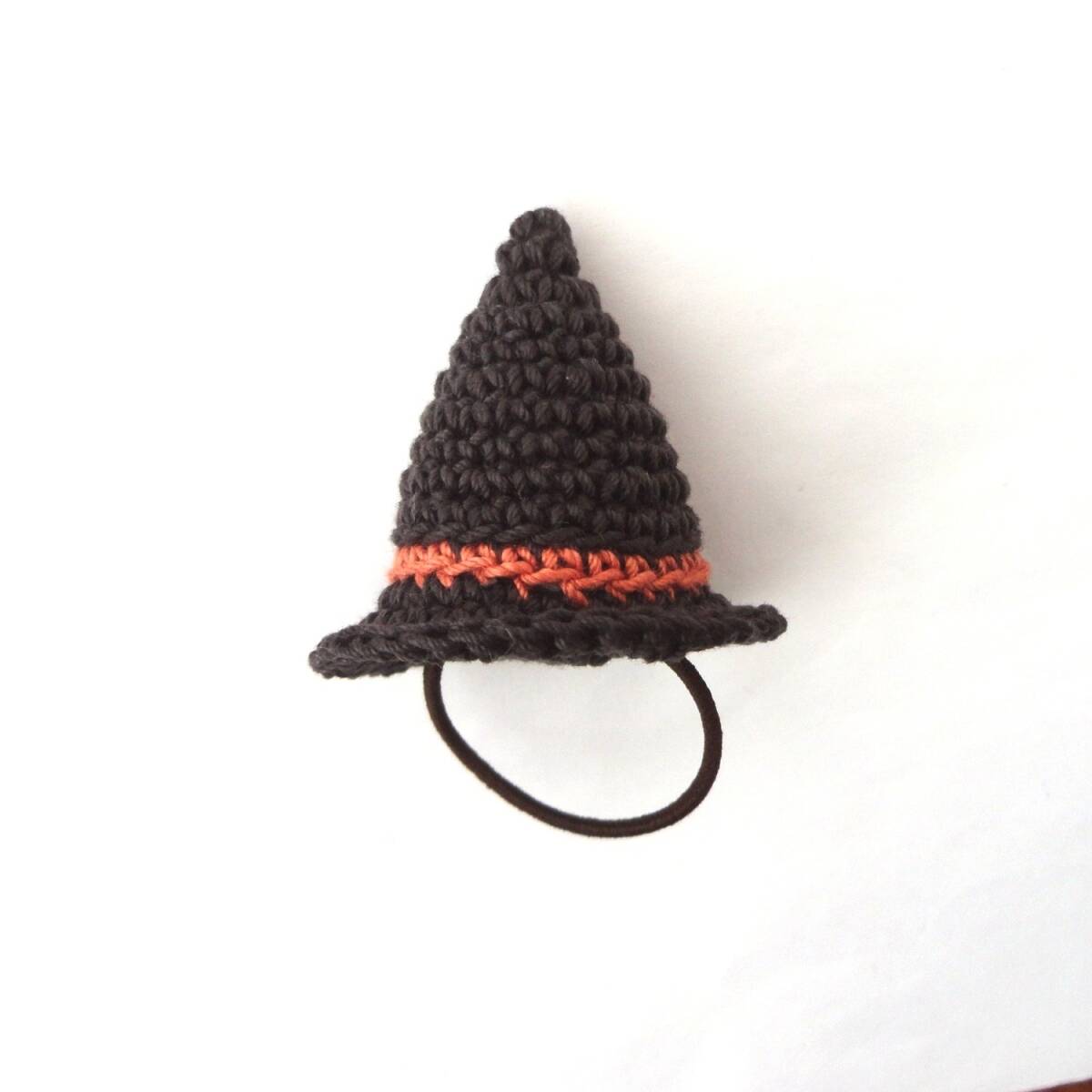 - ハロウィン*魔法使いの帽子のヘアゴム*BK×OR*レース編み*ハンドメイド*b909∴再販∴