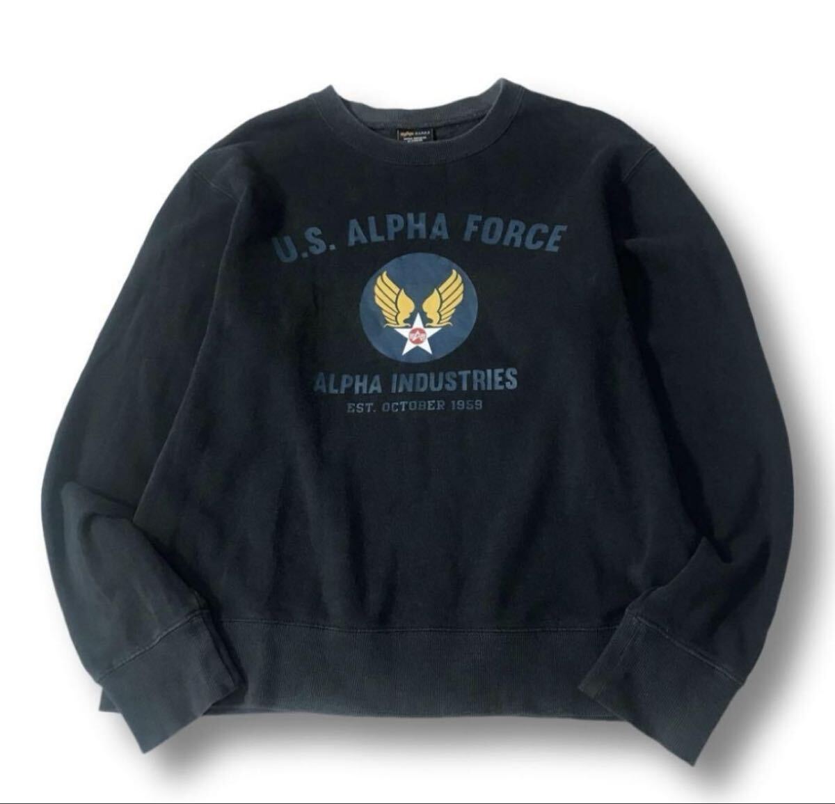 - ALPHA INDUSTRIES アルファインダストリーズ トレーナースウェット スウェット トレーナー ネイビー 米軍 US ミリタリー 空軍 古着