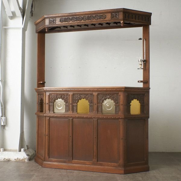 > IZ91239F★レア 英国 Old Charm バーカウンター ホームバー キッチン カウンター 木彫刻 店舗什器 イギリス オーク アンティーク スタイル