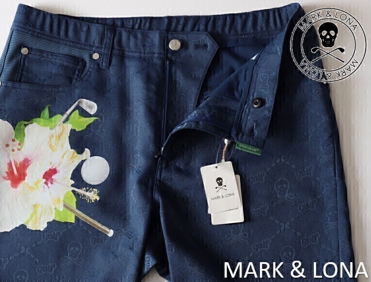 > 正規★ MARK&LONA マーク&ロナ ★ Jota Shorts ハイビスカスストレッチショートパンツ48★L【MLM-2B-AT19】インディゴ青【本物保証】1点物