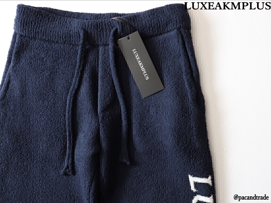 > LEON掲載 ★ LUXEAKMPLUS リュクスエイケイエムプラス ★サイドロゴニットロングパンツ M【lak-22008】ネイビー紺★数量限定 LUXE AKM PLUS