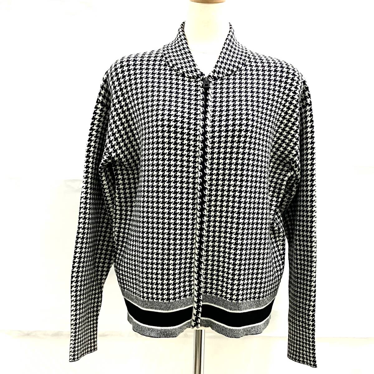 - 未使用 クリスチャンディオール 044V04AM035 カシミヤ ジップアップ ジャケット 40 ブラック×ホワイト 千鳥格子 レディース 150550